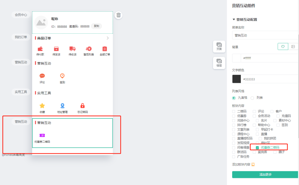 会员可以查看到自己的小程序优惠券二维码